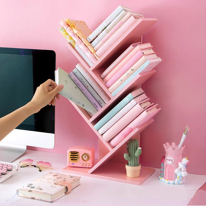 This Pink Wooden Table Bookshelf is a must have for any bookworm and kawaii people alike. Display any of your unfinished books or important notebooks and diaries in this lovely pink v-shaped bookshelf.