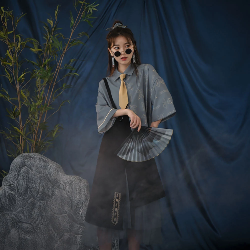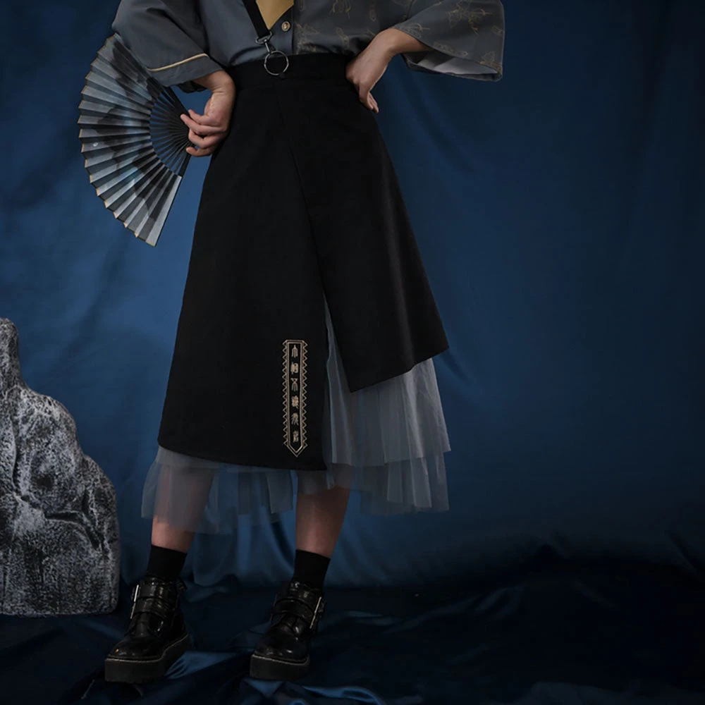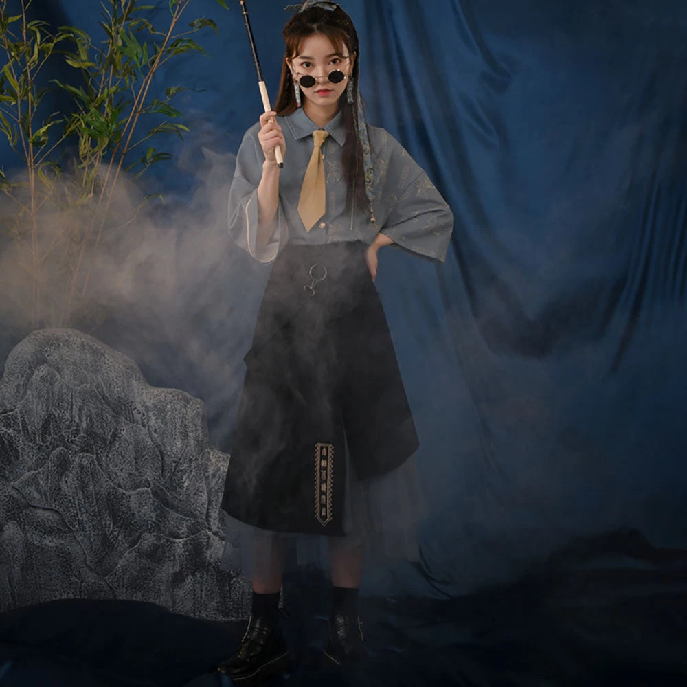 Shirt: Polyester; Skirt: Cotton