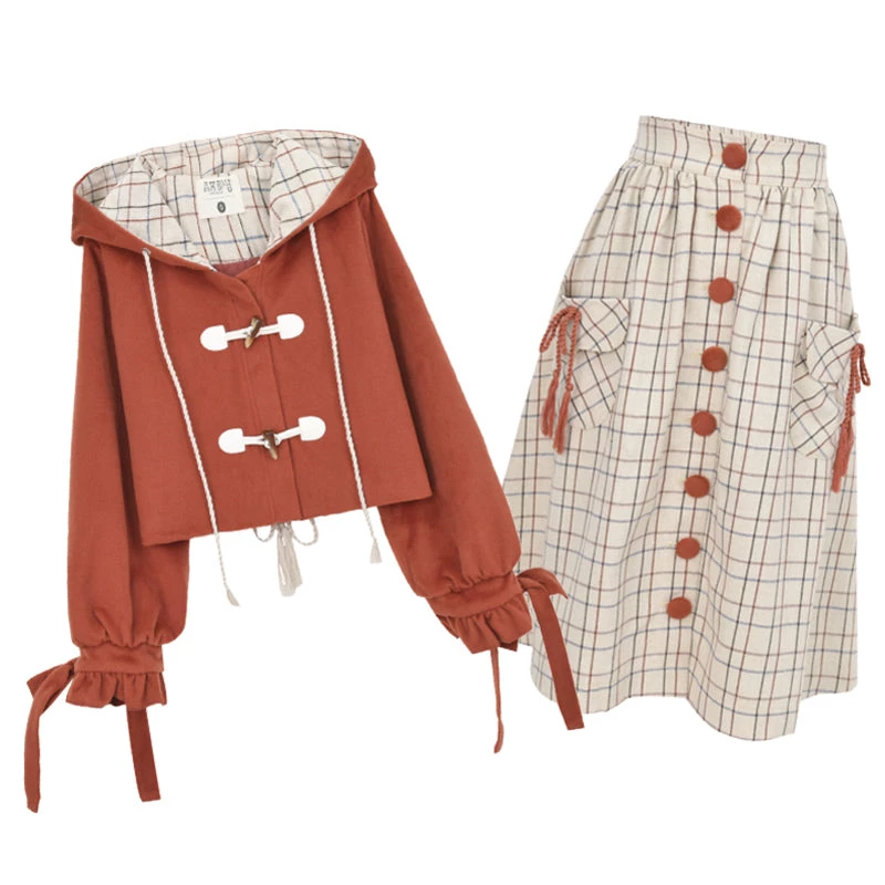 Coat: Orange Red, Skirt: Beige